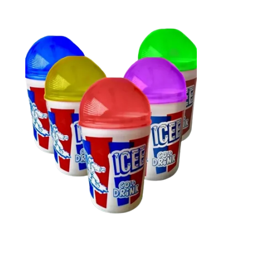 • 🧊 Diseño tipo ICEE, con forma de vaso congelado y tapa simulando el “granizado” en colores vibrantes.