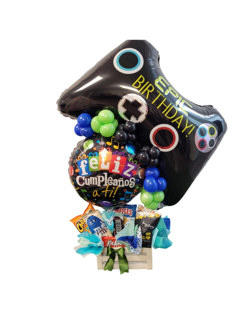 «Un regalo pensado para los verdaderos apasionados de los videojuegos: nuestro arreglo gamer combina estilo y diversión con detalles únicos que evocan el mundo digital. Decorado con globos, moño y elementos inspirados en la cultura gamer, incluye sorpresas que hacen de este detalle algo original y lleno de energía. Perfecto para cumpleaños, aniversarios o para sorprender a ese jugador especial con un obsequio que conecta directamente con su pasión.»