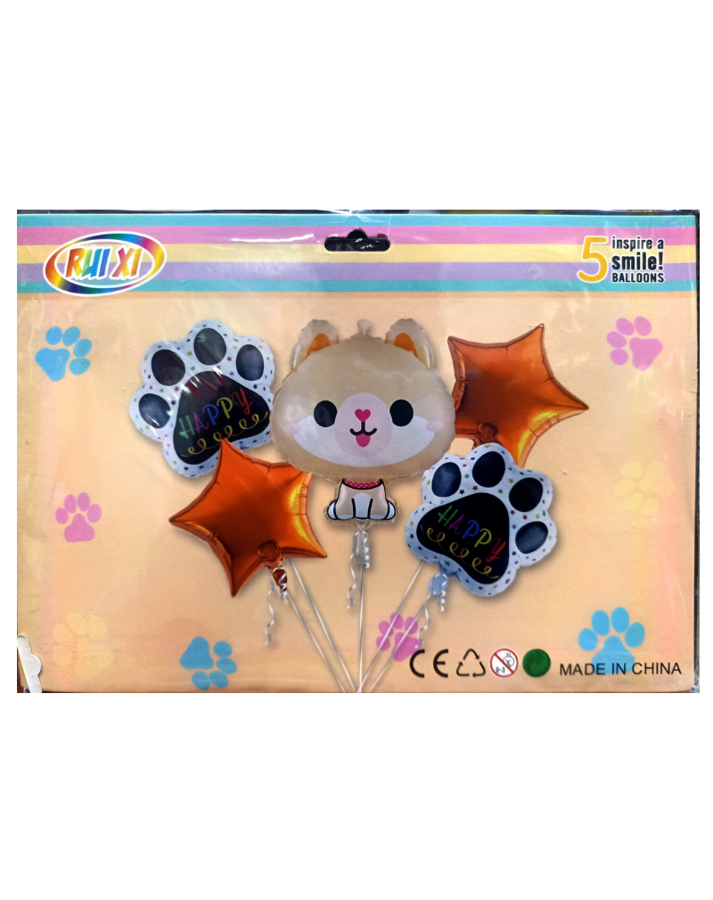 Este set incluye 5 globos metálicos con adorables diseños de perritos, perfectos para darle un toque divertido y encantador a cualquier celebración.