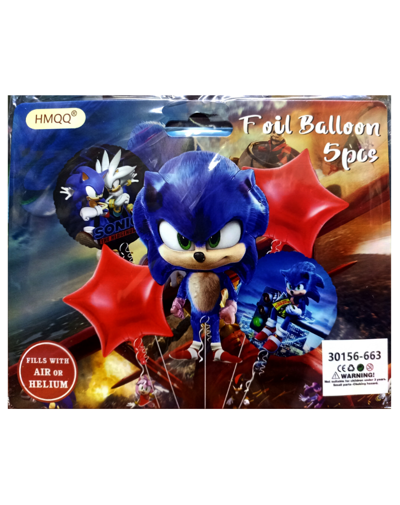 Este set incluye 5 globos metálicos con diseño de Sonic, perfectos para darle energía y color a cualquier cumpleaños infantil o evento temático.